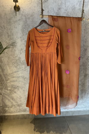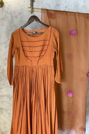 Material | Rose Cotton Anarkali With Hand Embroidery And Scalloping Details On All Over The Dupatta |