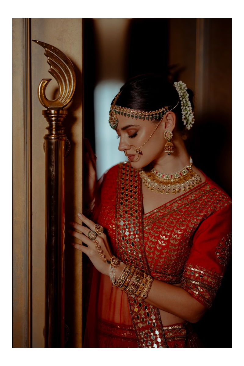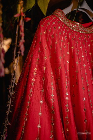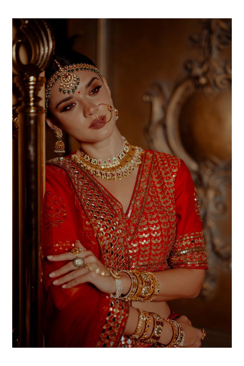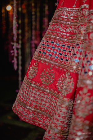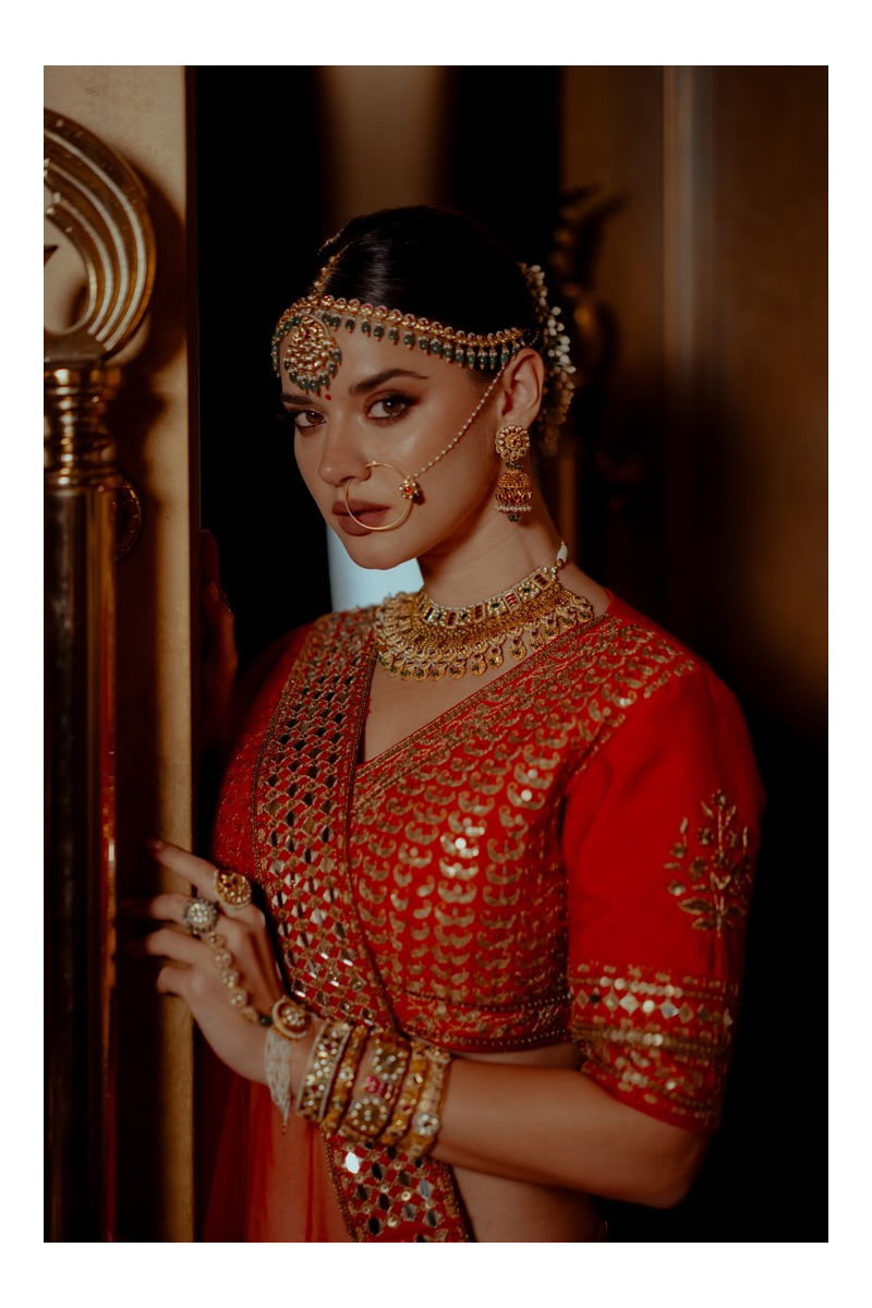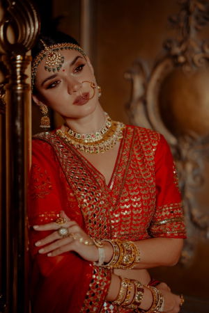 If you have envisioned your bridal entry, this heritage bridal lehenga truly deserves your attention. The legacy-laden golden-embroidered red lehenga is stealing the scene for us. Keeping the culture alive, the designer has added a touch of modern whimsy that we cannot help but feel deep regard for. The lehenga looks seamlessly traditional, elegant, and royal and reflects a poetic undertone for a bride’s journey.