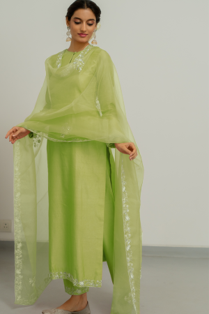 CEILINE CHANDERI SILK KURTA SET-Sage Green