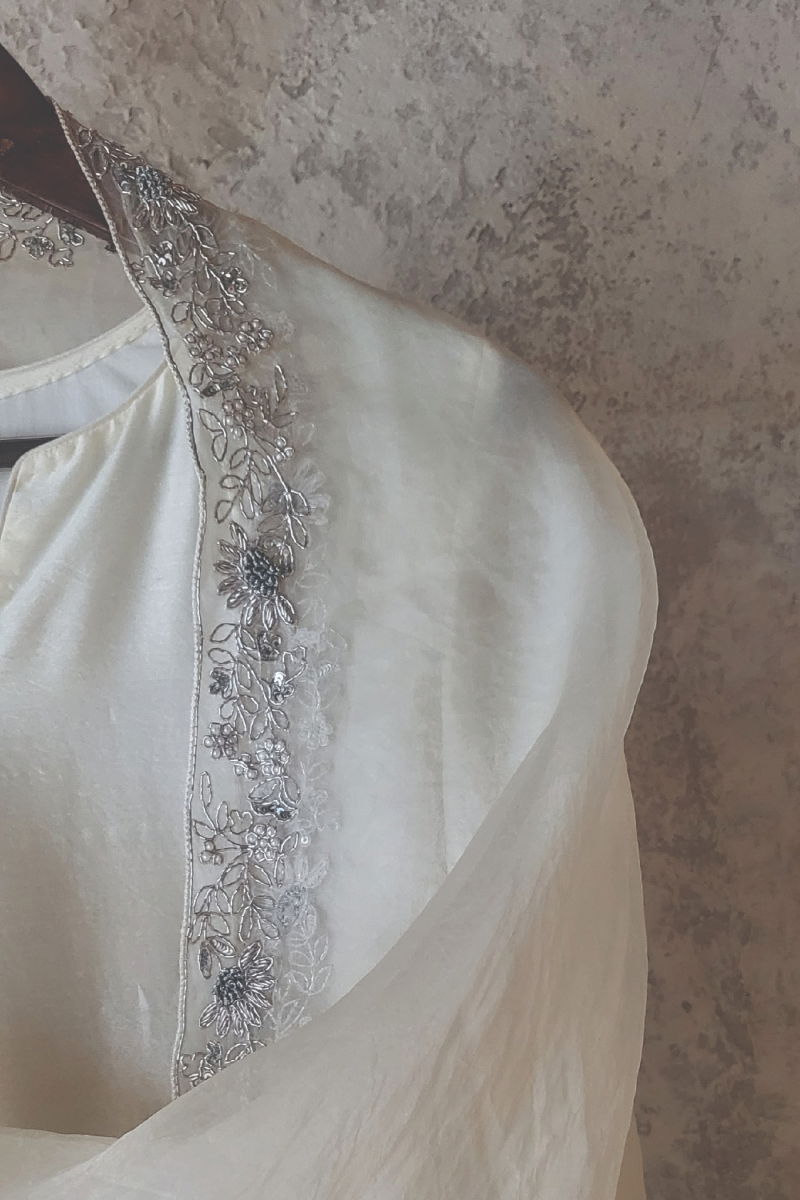 IVORY CELINE CHANDERI SILK KURTA SET