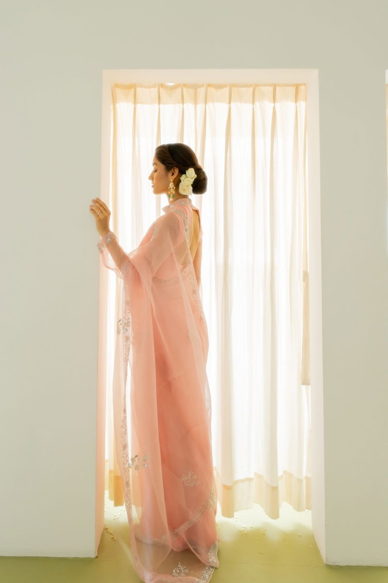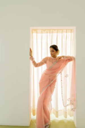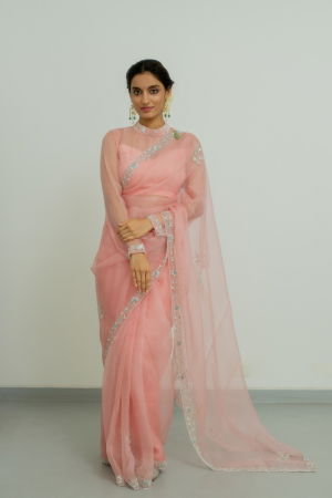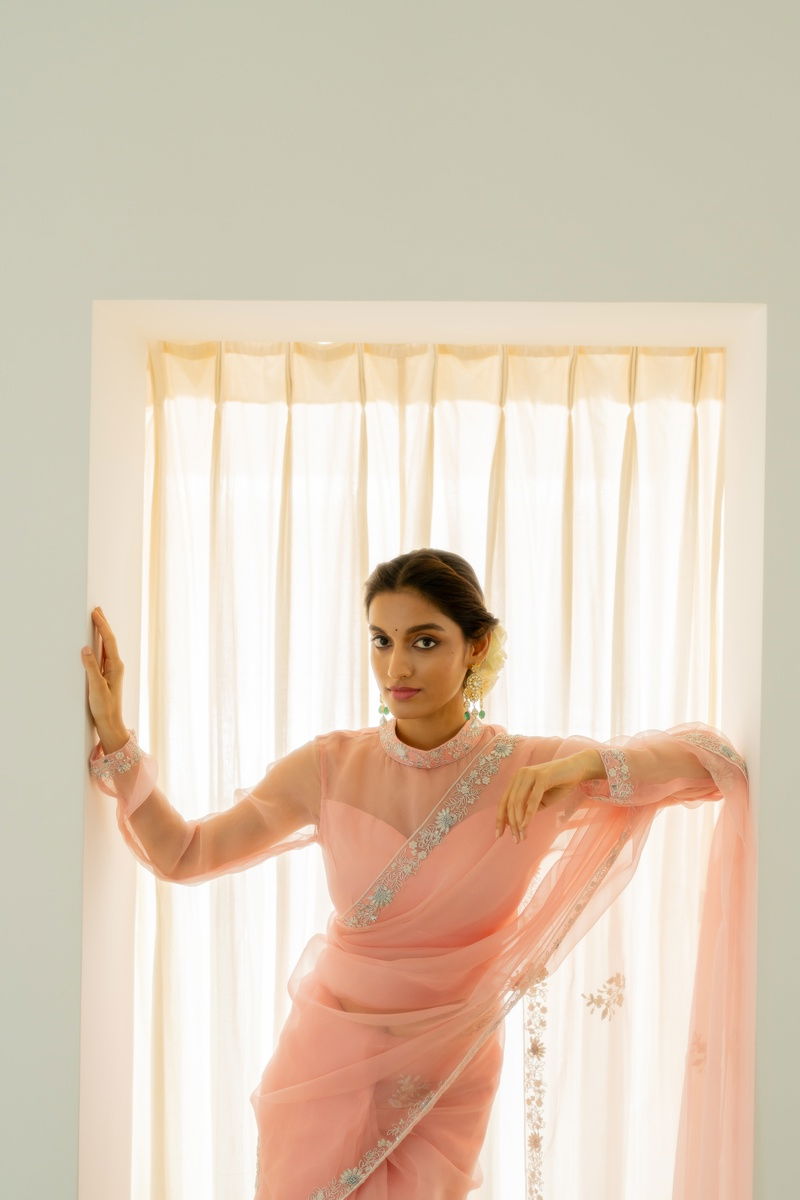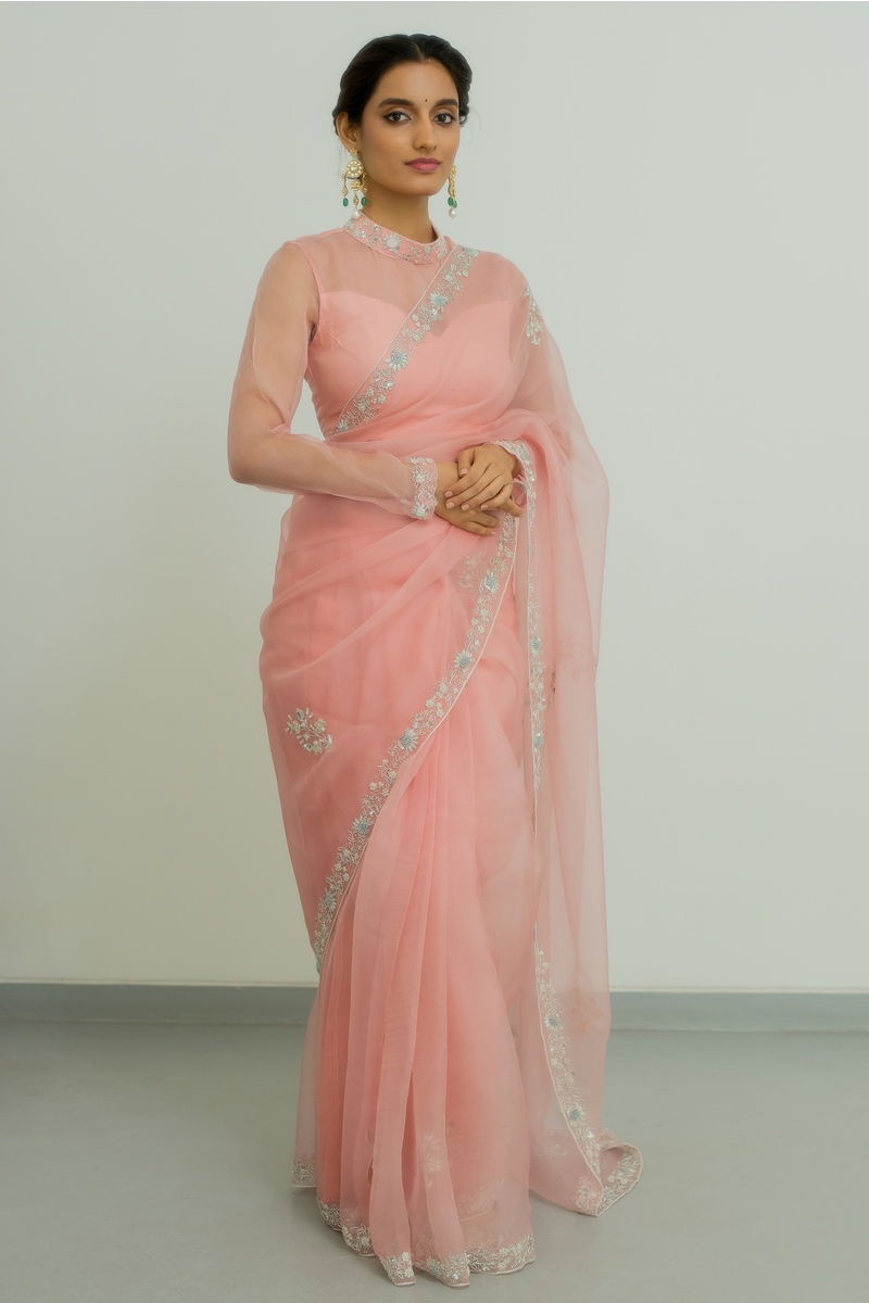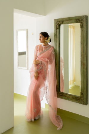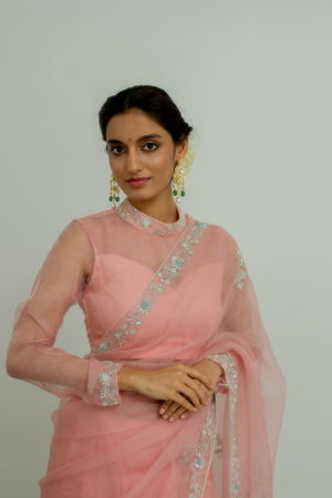 There are already so many reasons to love a Blush Pink organza saree! first and foremost, the color is absolutely beautiful and feminine, making it perfect for any occasion and the hand embroidery makes it more beautiful.