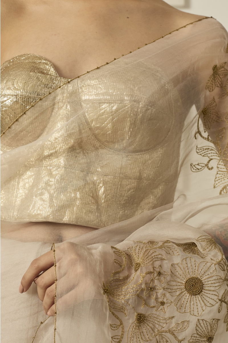 There are already so many reasons to love this Silver Disha blouse. The color is gorgeous and feminine, making it perfect for any occasion and the gota work makes it more beautiful.