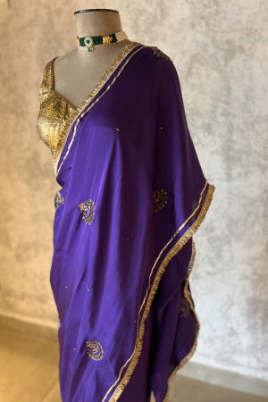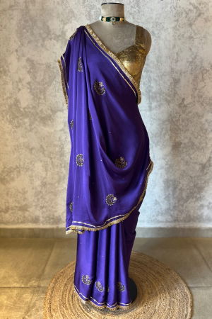 The Eloise Purple Satin Saree is a stunning piece that exudes elegance and sophistication. Made from the lightweight and lustrous satin fabric, this saree features a delicate sheen that gives it a graceful, ethereal appearance. The purple color adds a feminine and soft touch, making it perfect for formal events, weddings, or festive occasions.