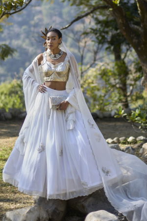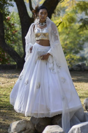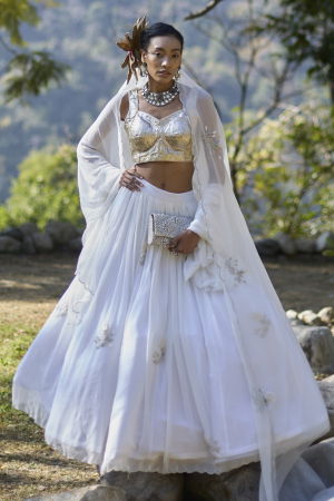 Product Description | The Floret White Lehenga is a vision of timeless elegance, crafted to exude grace and sophistication. Made from premium fabric, this lehenga features delicate floral embroidery that enhances its ethereal charm. The pristine white hue symbolizes purity and elegance, making it a perfect choice for weddings, festive celebrations, and special occasions. Its flowing silhouette offers a regal appeal, while the intricate detailing on the blouse and dupatta adds to its allure. Lightweight yet grand, this lehenga is designed for effortless movement and comfort. Elevate your wardrobe with this exquisite ensemble that beautifully blends tradition with modern elegance. |