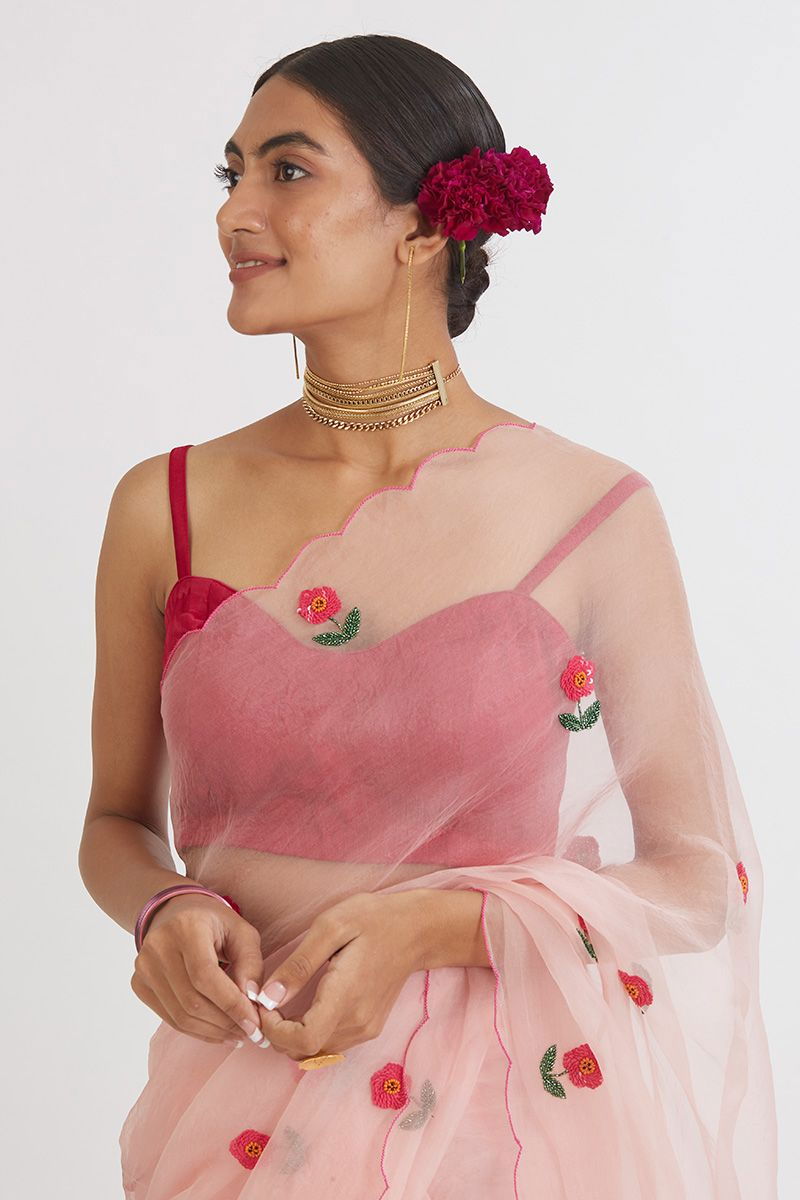 Whether you're looking to elevate your wardrobe with a touch of elegance or simply want to experiment with a bold, new style, the Hot Pink Sarika Blouse is a perfect choice. Crafted with precision and designed to stand out, this blouse embodies both grace and modern sophistication. Its striking hot pink hue adds a vibrant charm, making it an ideal statement piece for any occasion.