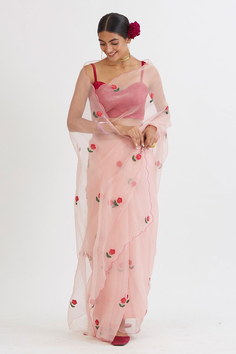 The Hot Pink Sarika Blouse, part of the 'Gul : A Blooming Flower' collection, is a masterful blend of traditional craftsmanship and contemporary design. Crafted from premium Moss Silk, this blouse features a striking Peacock Pink hue achieved through organic dyeing and textile manipulation techniques, ensuring a rich, sustainable color that stands out with elegance. Designed with a slim fit, it contours gracefully to the body, offering both comfort and a refined silhouette. Ideal for a wide range of occasions including weddings, mehandi, sangeet, engagement, reception, cocktail parties, brunch, and festive gatherings, this piece serves as a versatile statement in any wardrobe. Its intricate detailing and vibrant color make it a standout choice for those seeking a bold yet graceful look. Whether worn as a standalone piece or paired with traditional attire, the Hot Pink Sarika Blouse embodies modern sophistication and timeless charm, reflecting the essence of the Peeli Dori brand’s commitment to quality, artistry, and conscious fashion.