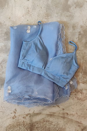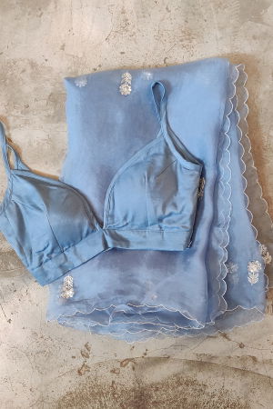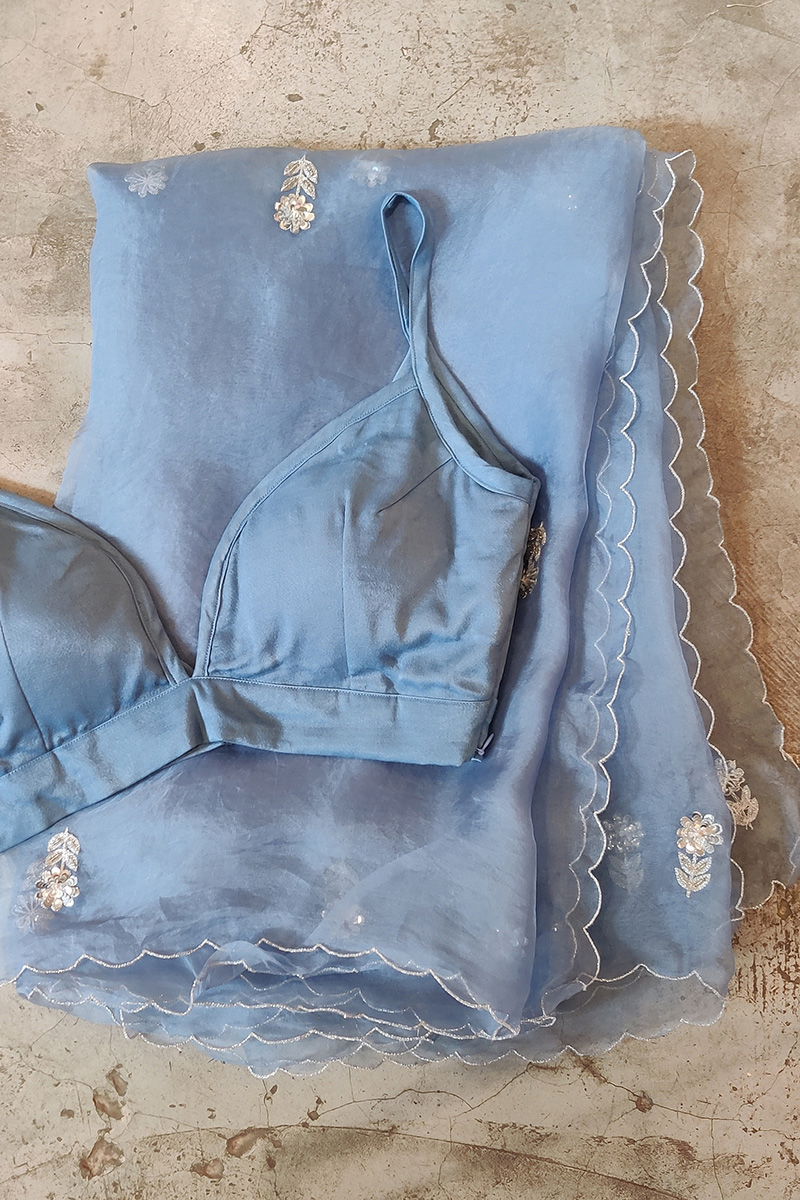 The IRIS BLOUSE, part of the 'Gul : A Blooming Flower' collection, is crafted from premium Moss Silk fabric, offering a luxurious drape and soft tactile experience. Dyed using the organic dying technique, the fabric retains a natural depth of color, showcasing the shade of Bluebird Blue with subtle variations that reflect the artisanal process. The blouse features textile manipulation, a meticulous technique that enhances the fabric's structure, creating subtle volume and dimension while maintaining a sleek, slim fit. Designed for versatility, it is ideal for a range of occasions including festive events, casual outings, brunch gatherings, weddings, cocktail parties, and formal social engagements. Its elegant silhouette and refined detailing make it a standout piece in any wardrobe, blending traditional craftsmanship with contemporary style. Available exclusively through Peeli Dori Online Store, the IRIS BLOUSE combines sustainable practices with timeless design, embodying the essence of the brand’s commitment to quality and artistry.