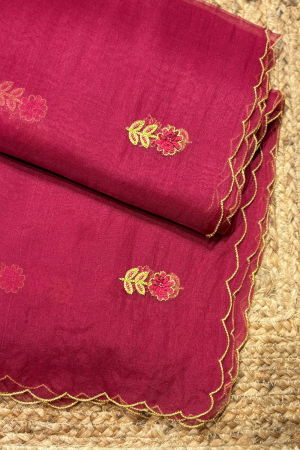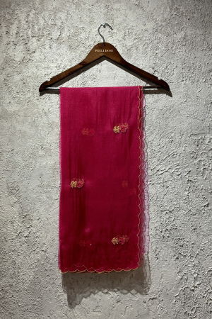Elevate your style with the Iris pink Dupatta, where the delicate charm of French florals meets the artistry of Indian hand embroidery, creating a mesmerizing textile surface.
