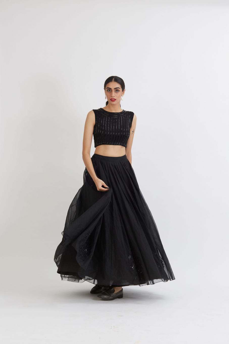 Inspired by spring florals in a Purple shade. A dainty motif in silver zari and beads, hand embroidered all over the Silk Organza saree with Scalloping details on the edging.