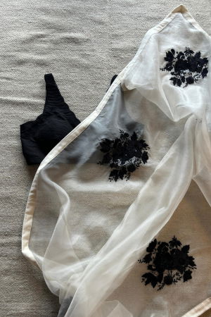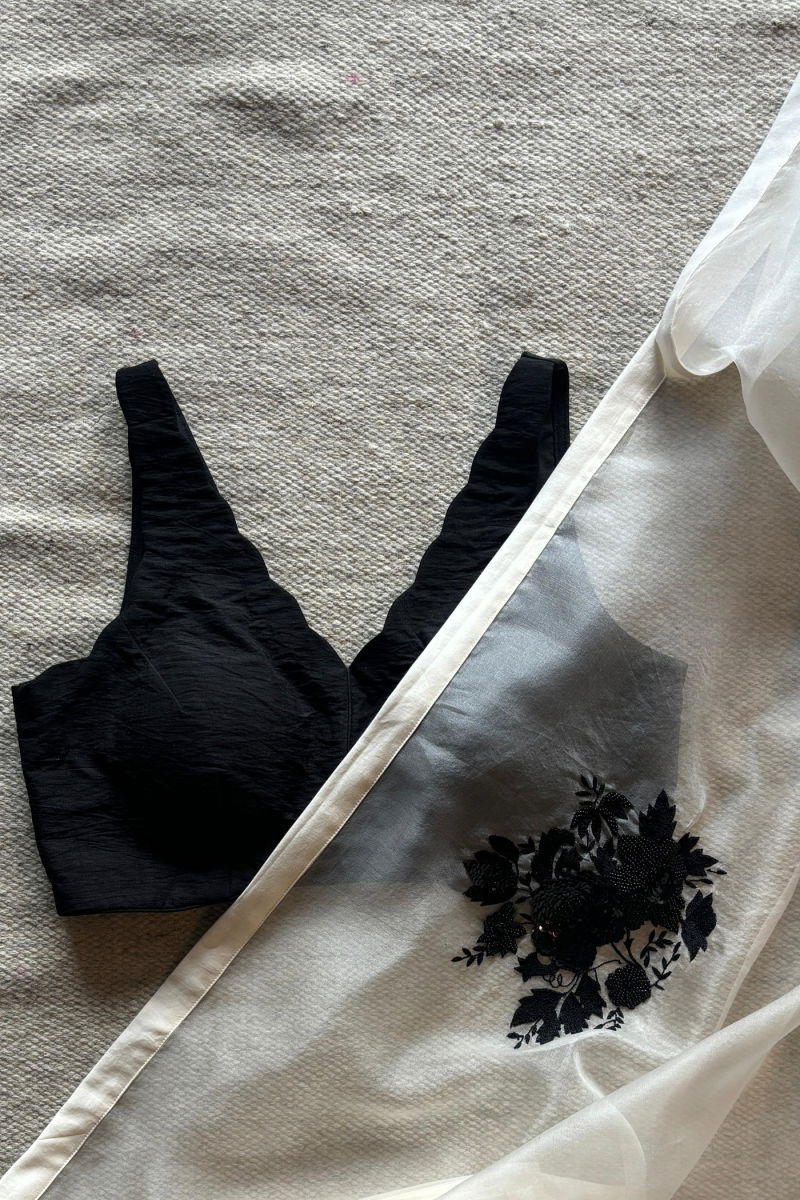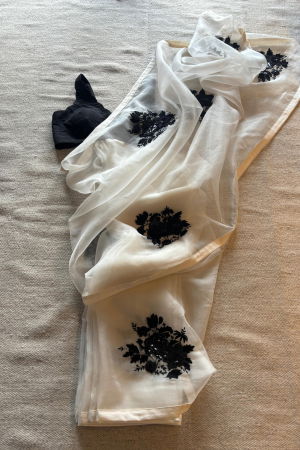 IVORY-BLACK ARADHANA ORGANZA SAREE