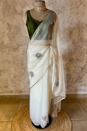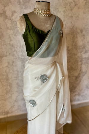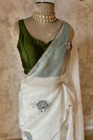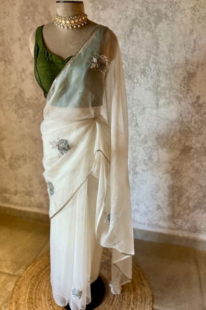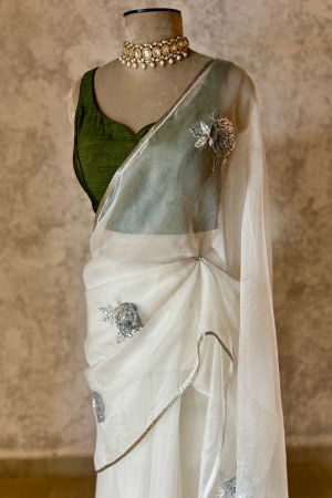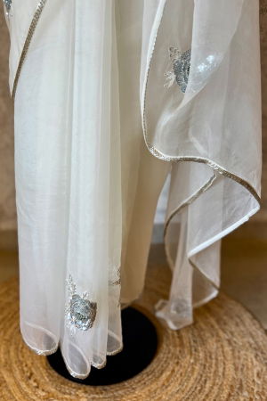 IVORY SILVER PARO 2 SILK ORGANZA SAREE