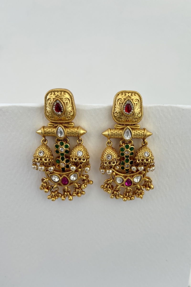 GOLD AND MEENA SMALL EARRINGS