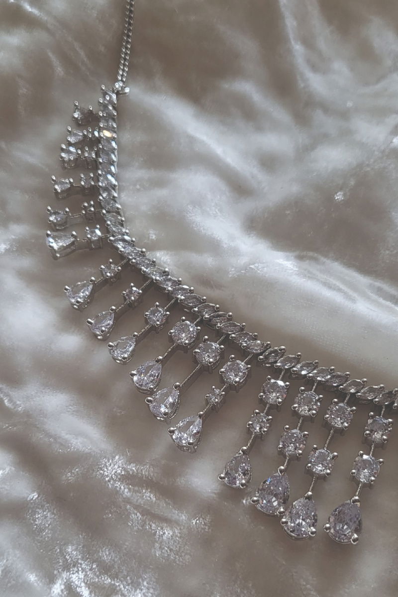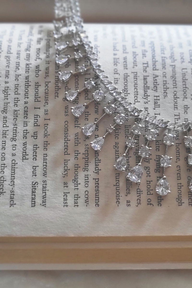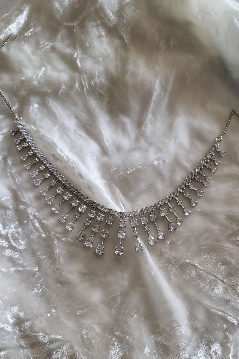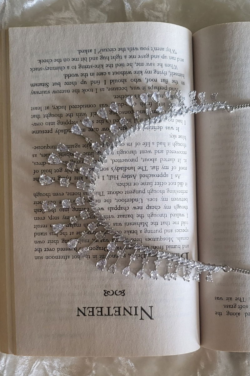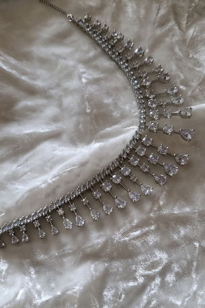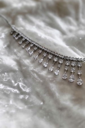 A neckpiece, a white artificial diamond studded, each secured with a fishhook closure.