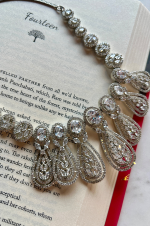A neck piece with white artificial diamond studded. secured with a fishhook closure.