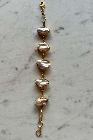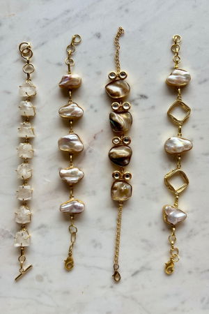 A set consists of a bracelet, has white stone studded, and is secured with a hook closure