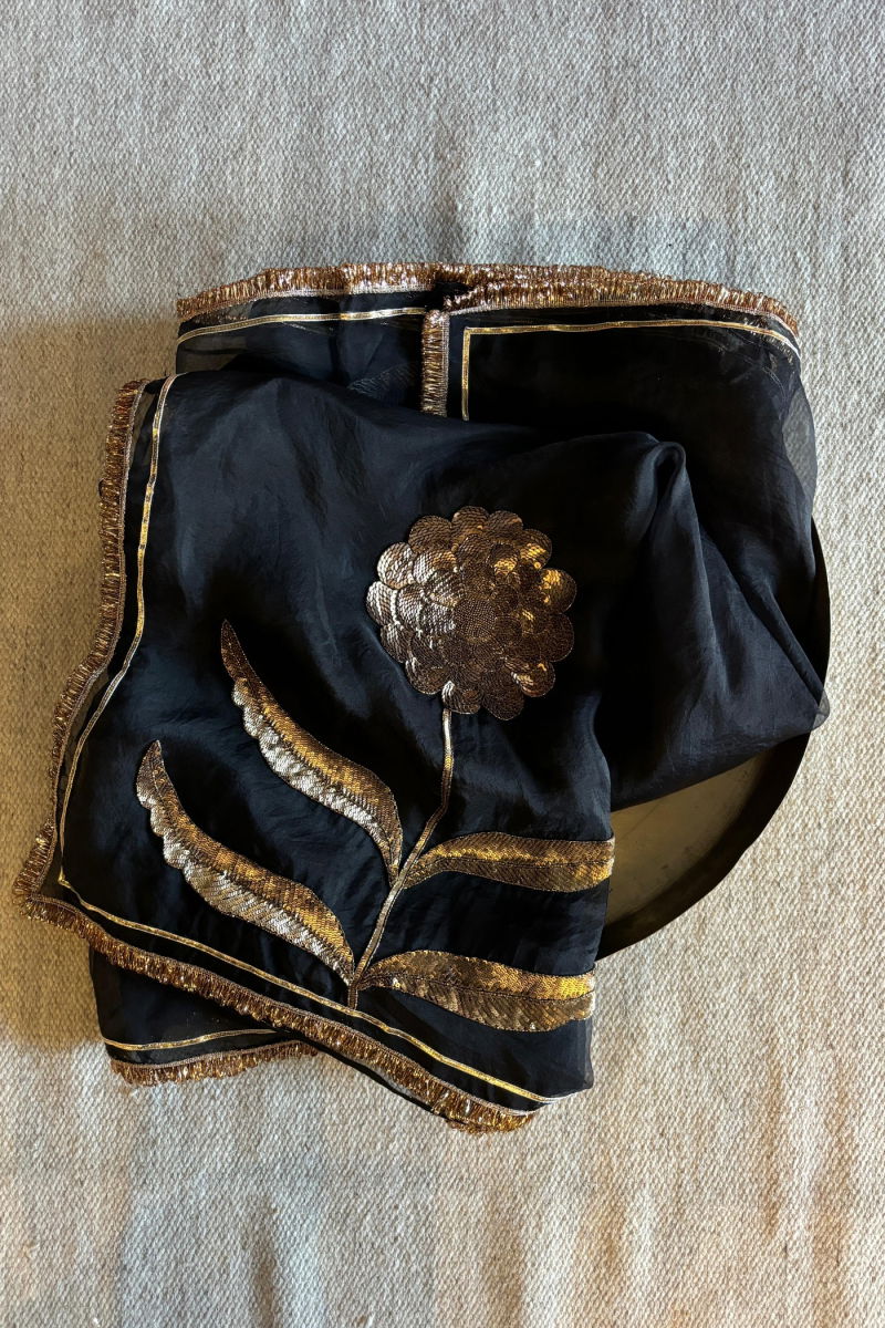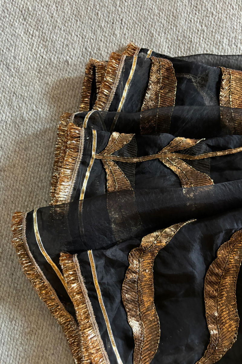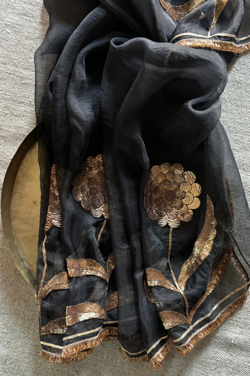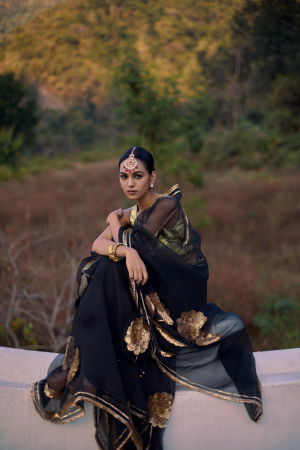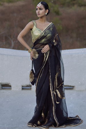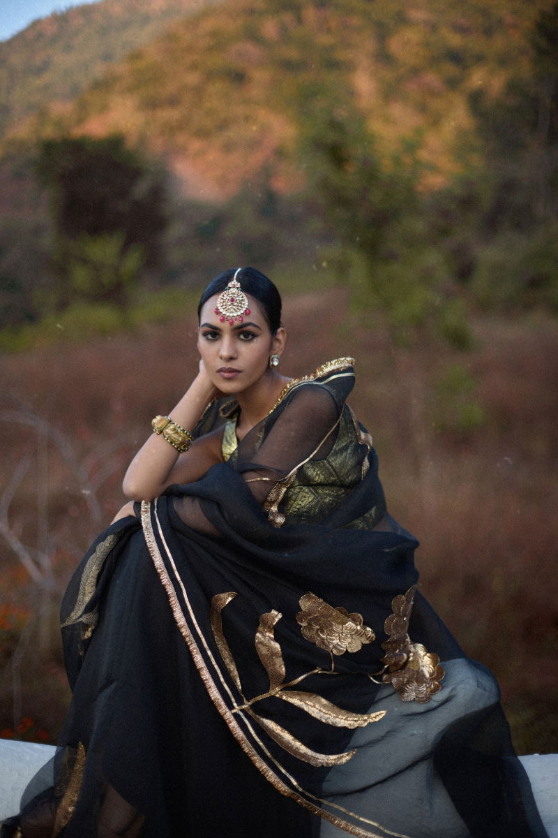 Lauret Black Silk Organza Saree, Black Silk Saree, Organza Saree, Designer Saree, Evening Wear Saree, Party Wear Saree, Festive Saree, Wedding Saree, Elegant Black Saree, Luxury Saree, Ethnic Wear, Indian Saree, Handcrafted Saree, Sheer Silk Saree, Lightweight Saree, Statement Saree, Modern Saree, Timeless Fashion, Sophisticated Saree, Glamorous Saree