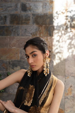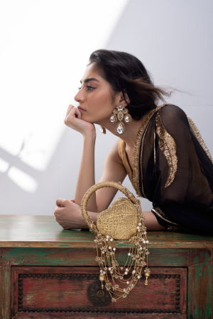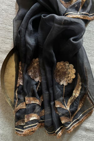 Product Description | The Lauret Black Silk Organza Saree is a perfect fusion of elegance and contemporary charm, designed for those who appreciate refined sophistication. Crafted from luxurious silk organza, this saree features a lightweight and sheer texture, offering a graceful drape that flows effortlessly with every movement. The deep black hue adds a touch of mystery and allure, making it an ideal choice for evening gatherings, weddings, and festive celebrations. Its subtle sheen enhances its timeless appeal, while the intricate craftsmanship highlights fine attention to detail. Whether styled with bold jewelry for a dramatic statement or paired with minimal accessories for an understated yet classy look, the Lauret Black Silk Organza Saree ensures a mesmerizing presence at any special occasion. |