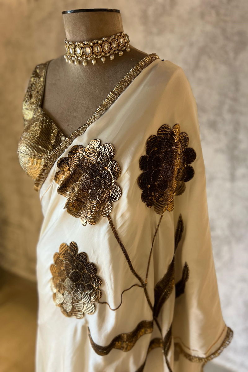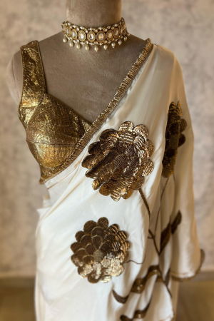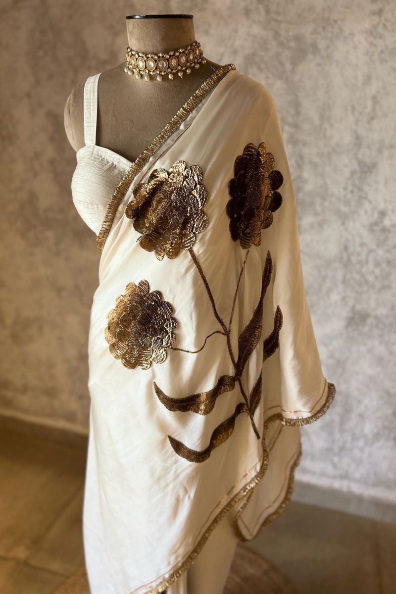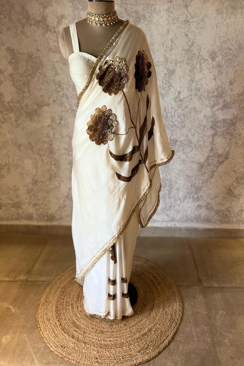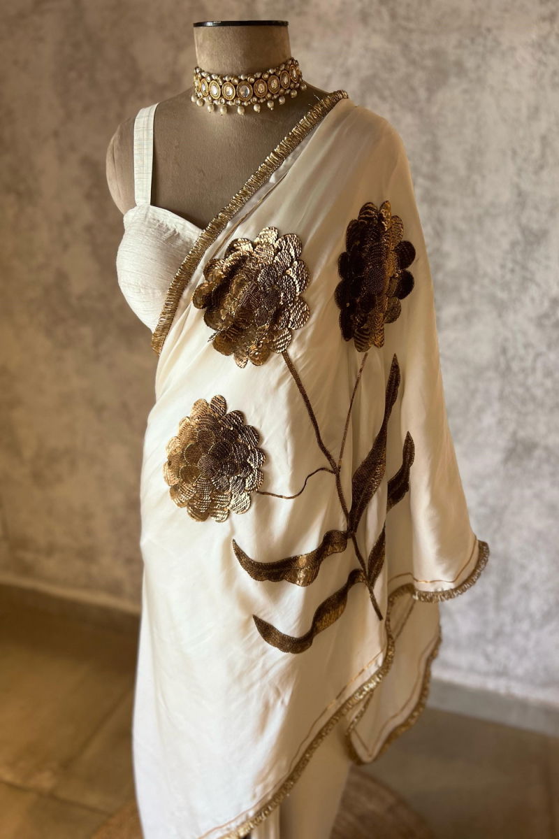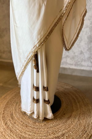 LAURET IVORY SILK SATIN SAREE