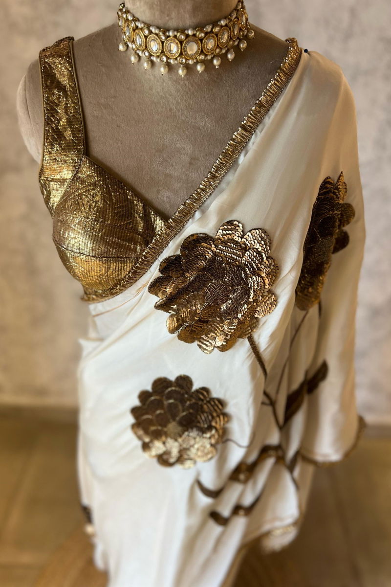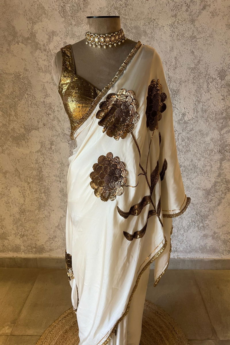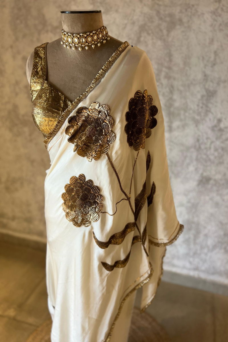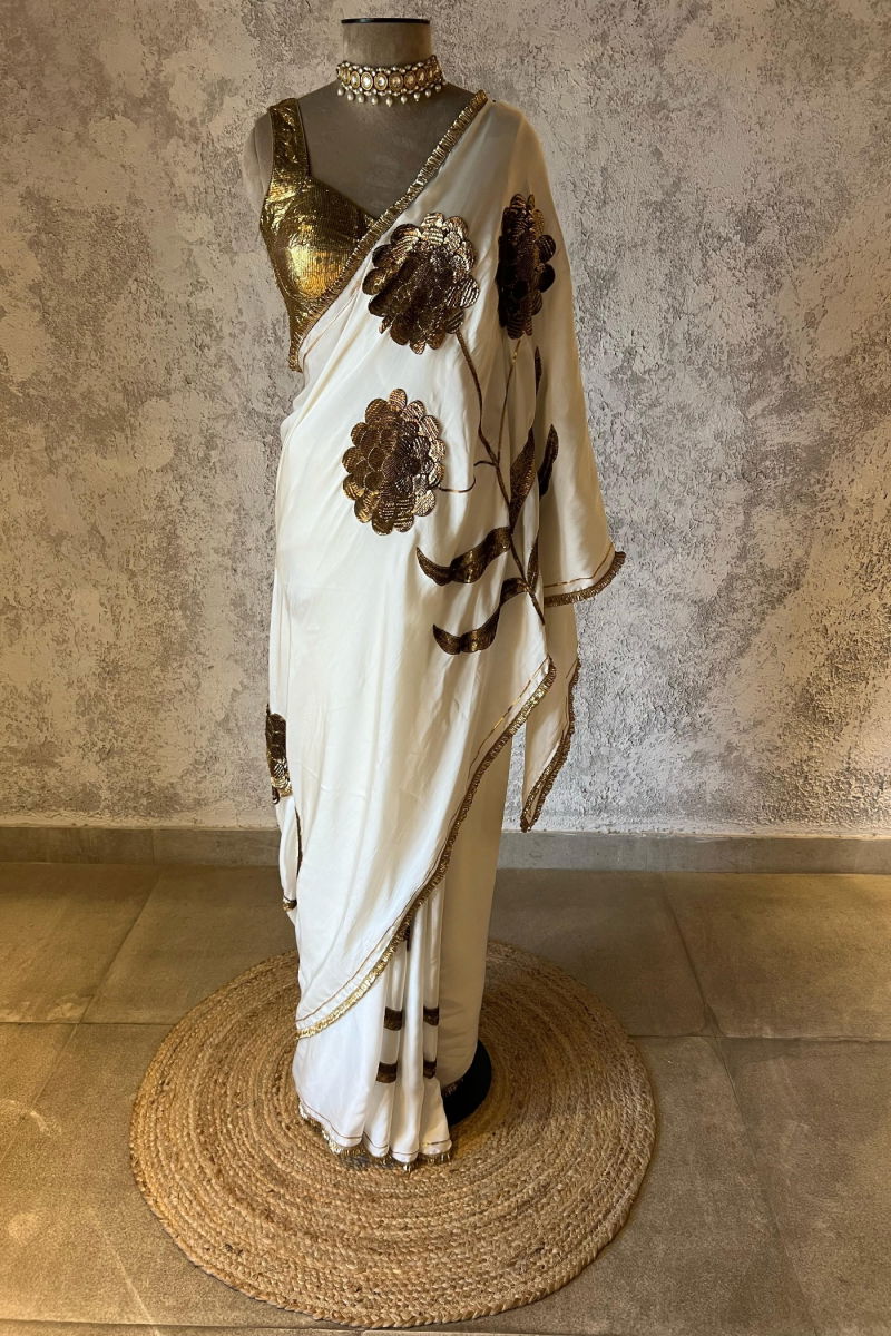 LAURET IVORY SILK SATIN SAREE