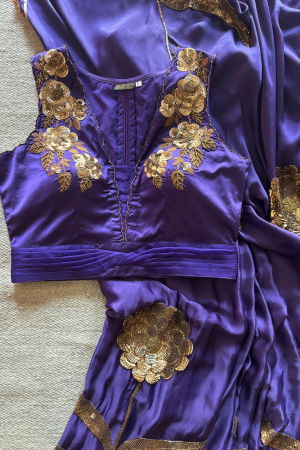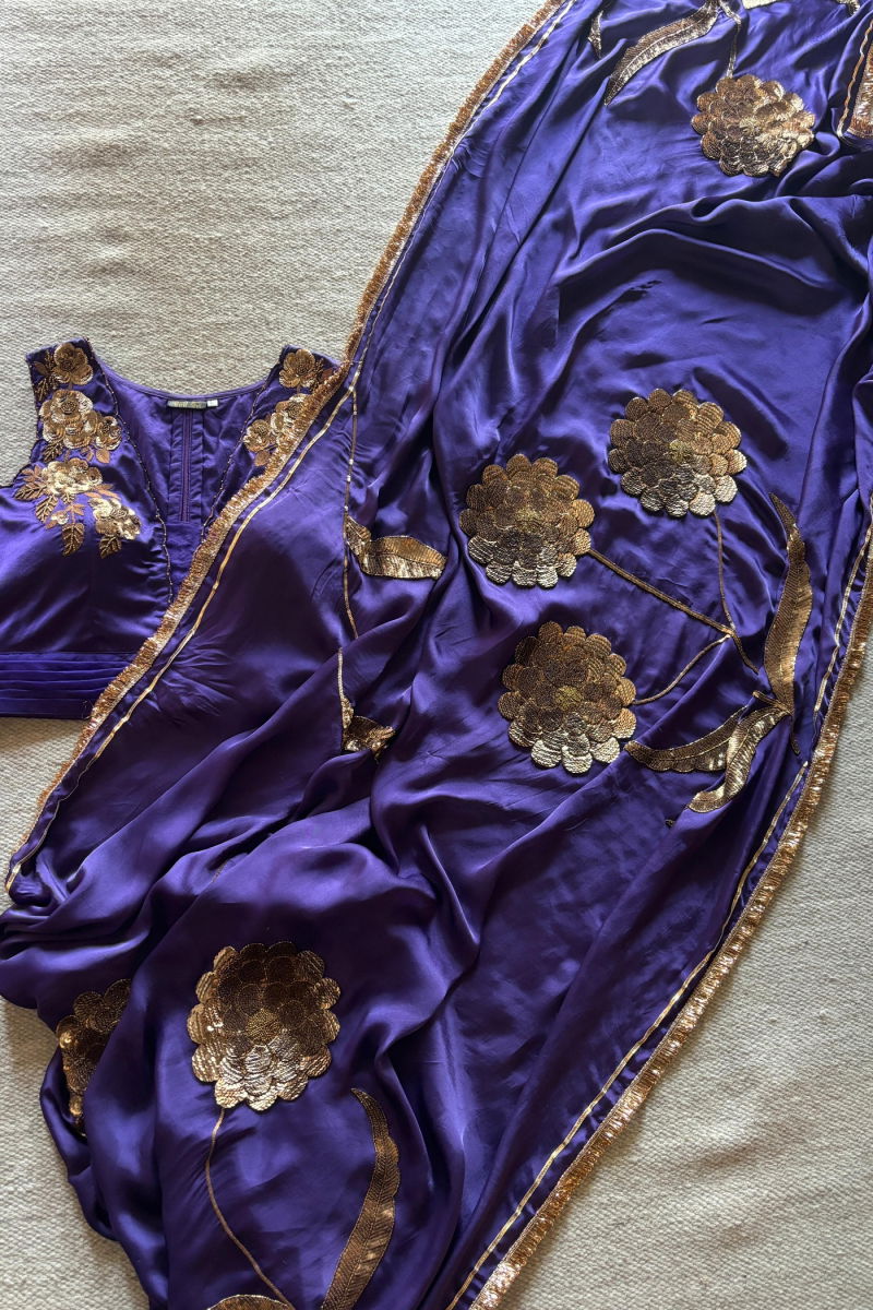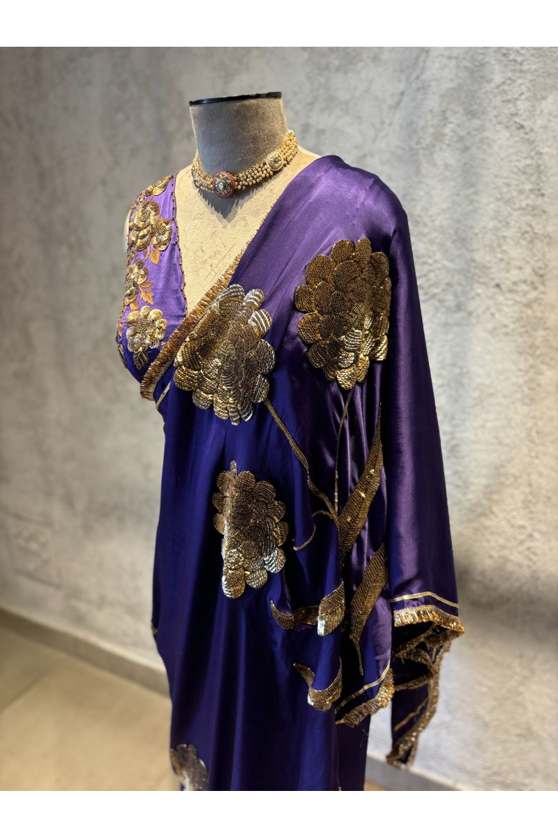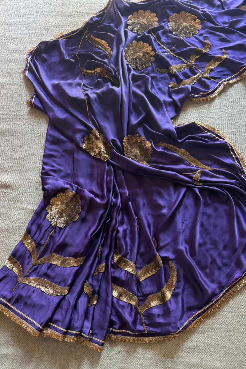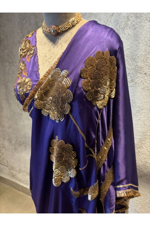 LAURET PURPLE SILK SATIN SAREE