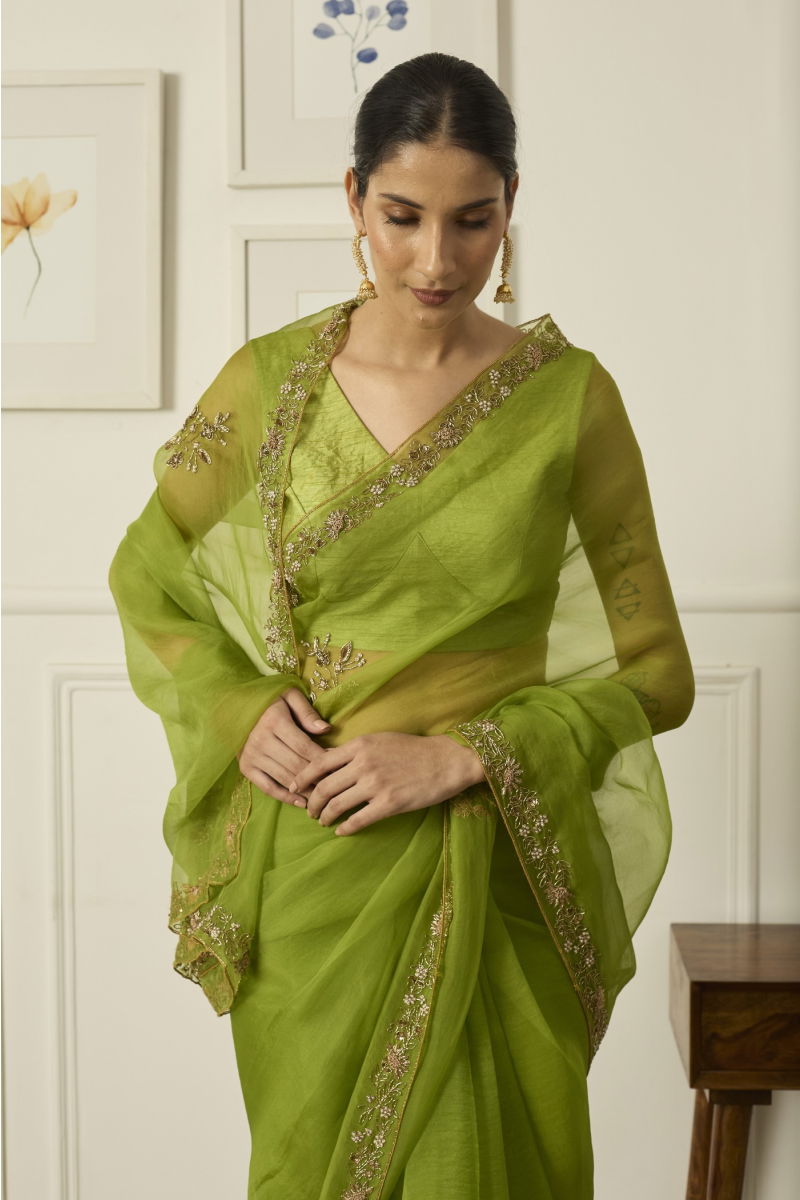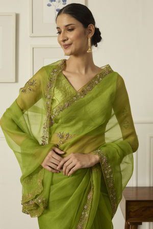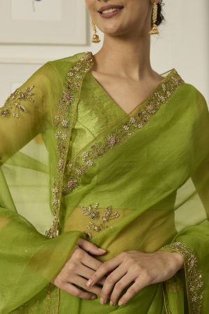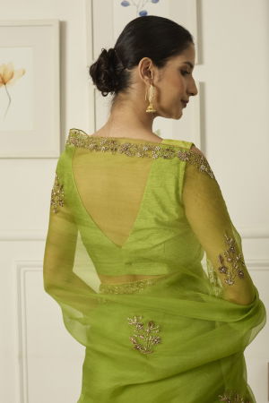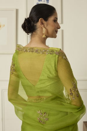 LIME MEENAKSHI SILK ORGANZA SAREE