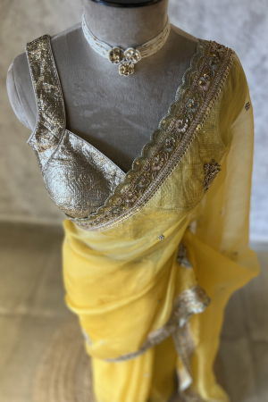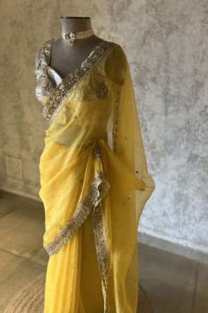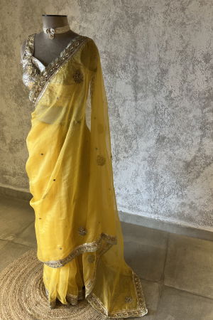 Product Description | The Mastani Yellow Silk Organza Saree is a stunning blend of vibrancy and elegance, designed to make you stand out with grace. Crafted from premium silk organza fabric, this saree is lightweight, airy, and effortlessly chic, offering a soft yet structured drape that enhances your silhouette. The radiant yellow hue symbolizes joy, positivity, and tradition, making it a perfect choice for weddings, haldi ceremonies, festive gatherings, and special occasions. Adorned with intricate embroidery and delicate embellishments, this saree showcases fine craftsmanship, adding a touch of sophistication to its timeless beauty. Whether styled with traditional jewelry for a regal appeal or paired with modern accessories for a contemporary twist, the Mastani Yellow Silk Organza Saree ensures you exude elegance and confidence at every celebration. A perfect fusion of heritage and modernity, this saree is a must-have for your festive wardrobe. |