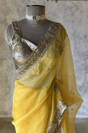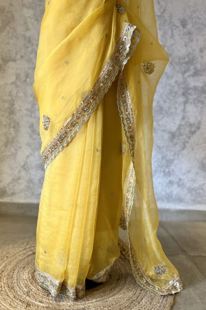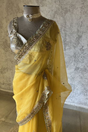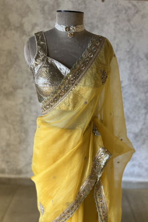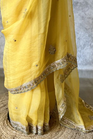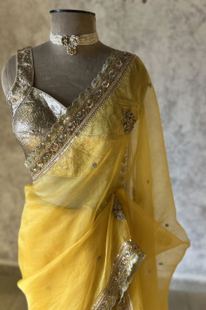 mastani yellow saree, silk organza saree, yellow organza saree, designer saree, wedding saree, festive wear, elegant saree, luxury saree, ethnic wear, traditional saree, party wear saree, embroidered saree, haldi saree, reception saree, statement saree, vibrant saree, handcrafted saree, lightweight saree