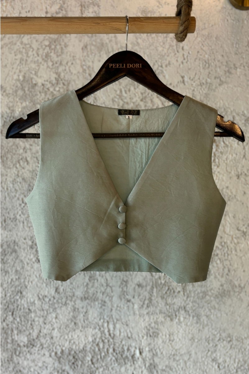 A Mint Silk Waist Coat blouse sets the tone at every event filling the space with enthusiasm and vigor. So if you want to make a bold choice with staying in your comfort this blouse is perfect for you.