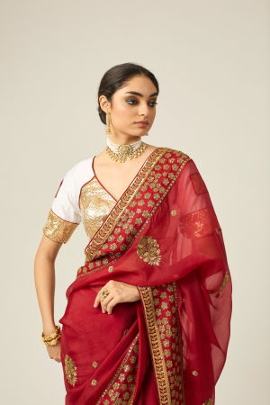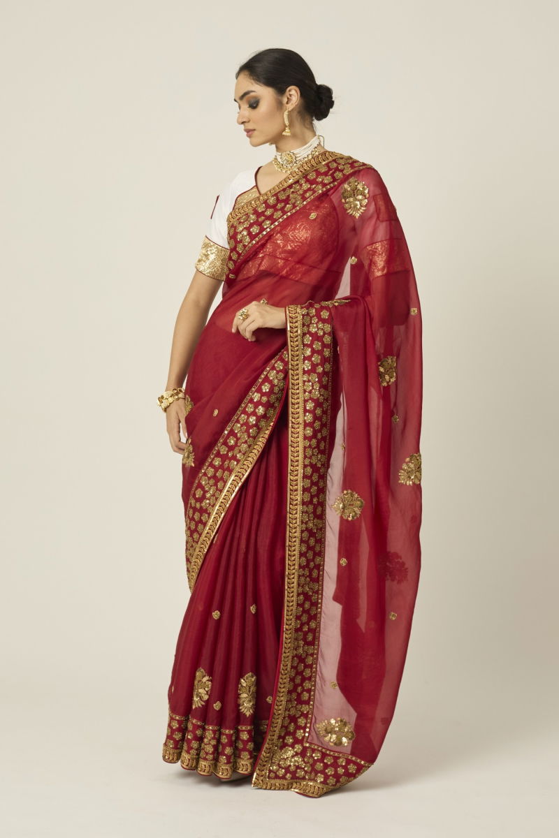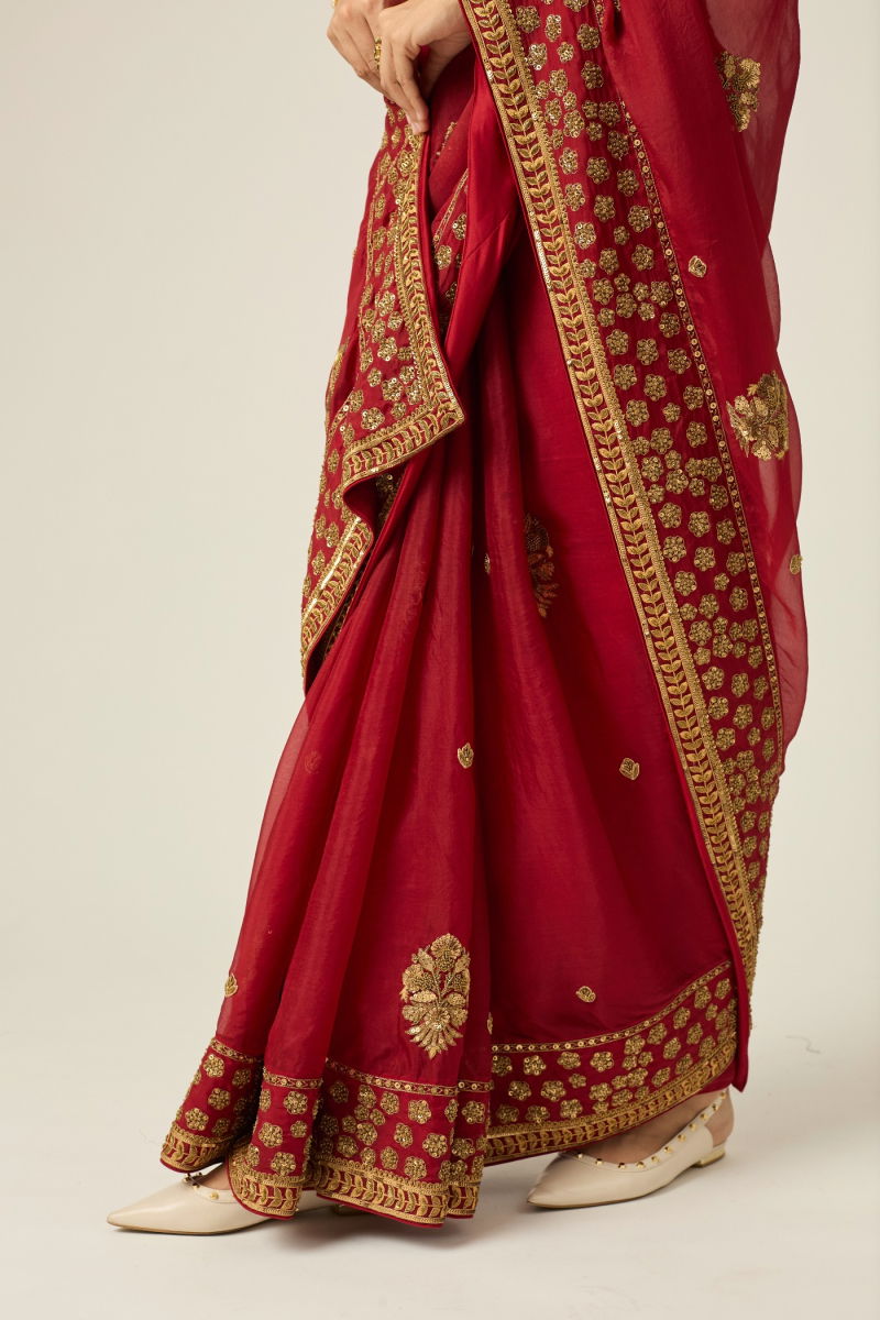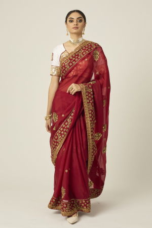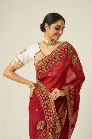 MYRA RED ORGANZA SAREE