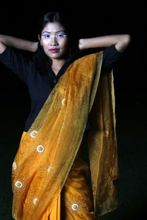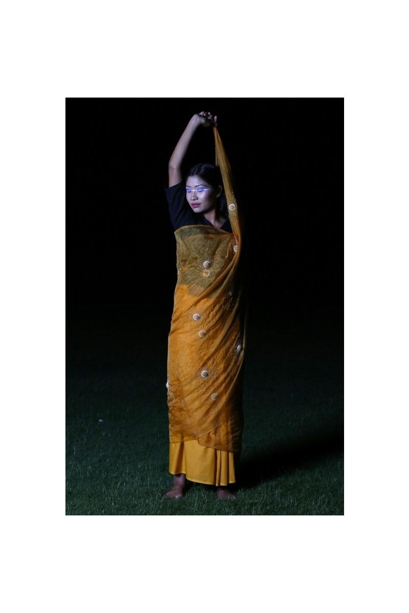The Nakshatra Tara saree is a celestial masterpiece, intricately woven to evoke the brilliance of the night sky. Inspired by the stars, this saree features exquisite craftsmanship and delicate embellishments that shimmer like constellations. With its ethereal beauty and timeless allure, the Nakshatra Tara saree is a symbol of grace and sophistication, perfect for those who wish to shine bright on any occasion.