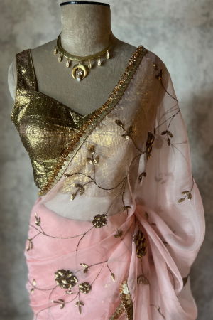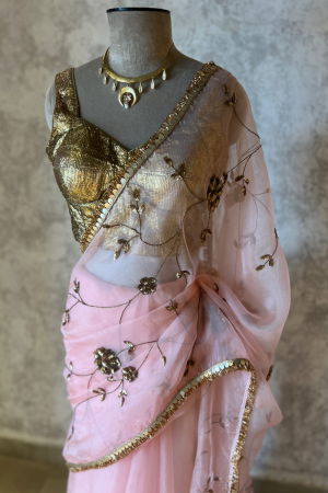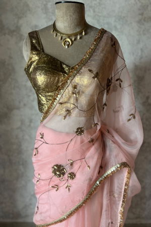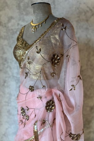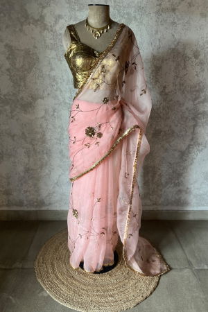 PINK NAYANTHARA SILK ORGANZA SAREE