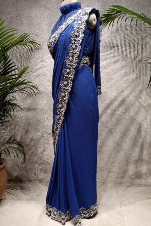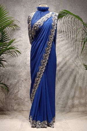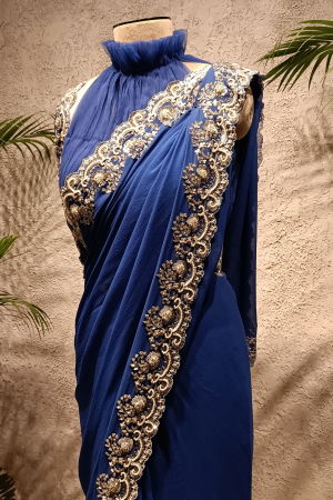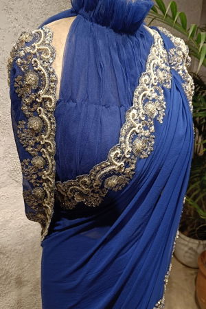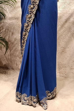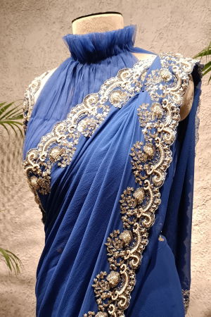 A Nishka Blue Georgette Saree is an elegant and lightweight garment made from premium georgette fabric in a rich, deep blue hue. The saree features a fluid, graceful drape and is often adorned with delicate embellishments, embroidery, or sequins to add a touch of sophistication. Perfect for both formal and semi-formal occasions, it combines traditional charm with contemporary style.