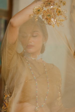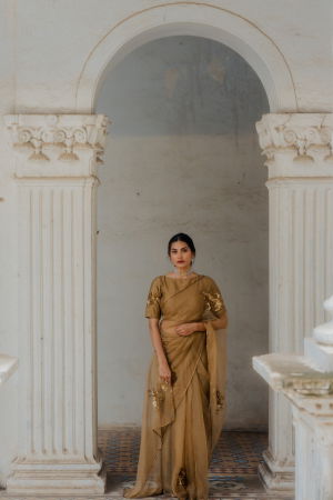 This is one posh look that you can wear preferably to weddings. You can pair this blouse with a Diamond or Platinum set. It will look stunning.
