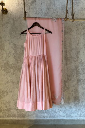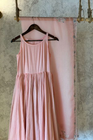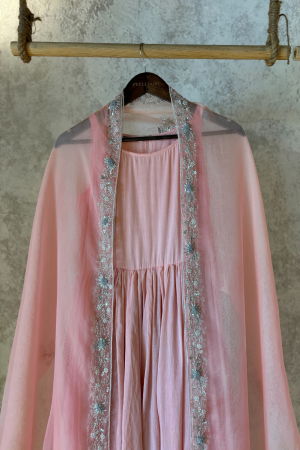 The Pink Ceiline Anarkali is a stunning traditional outfit characterized by its flowing silhouette and elegant design. In a soft pink hue, it features a gracefully flared skirt with intricate embroidery or embellishments, often paired with a matching dupatta. The anarkali's rich fabric and detailed craftsmanship make it a perfect choice for festive occasions or formal events, combining timeless beauty with a touch of contemporary style.