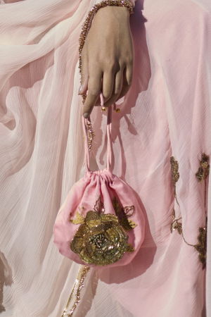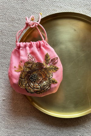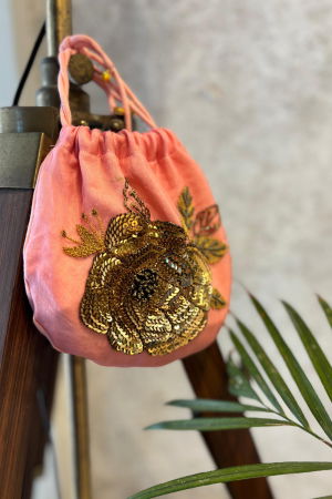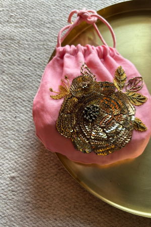 "Elegant and versatile, this Paro Potli bag features intricate embroidery and sparkling sequins. Perfect for weddings, parties, and festive occasions, it adds a touch of glamour to any outfit. The drawstring closure and spacious interior make it both stylish and practical."