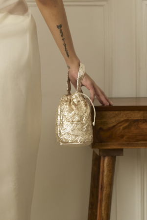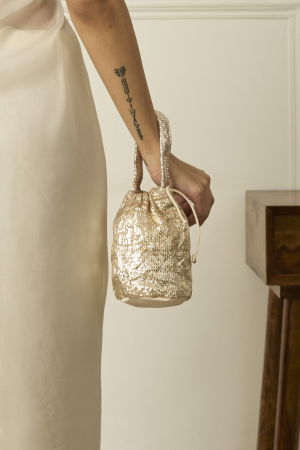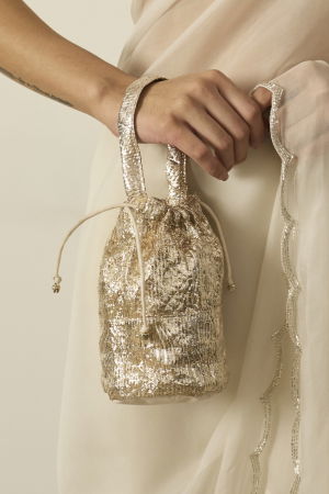 "Elegant and versatile, this silver Potli bag features intricate embroidery and sparkling sequins. Perfect for weddings, parties, and festive occasions, it adds a touch of glamour to any outfit. The drawstring closure and spacious interior make it both stylish and practical."