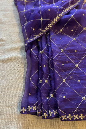 The rich hue of olive purple adds a touch of sophistication, while the meticulous embroidery elevates the saree into a masterpiece of artistry. Whether worn for a special occasion or a cultural celebration, this saree exudes timeless beauty and grace, making it a cherished addition to any wardrobe.