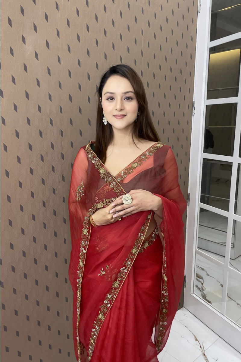 If you are looking for an elegant lightweight saree that is easy to drape then here is this Red Meenakshi Organza Saree for you it makes you stylish on any occasion.