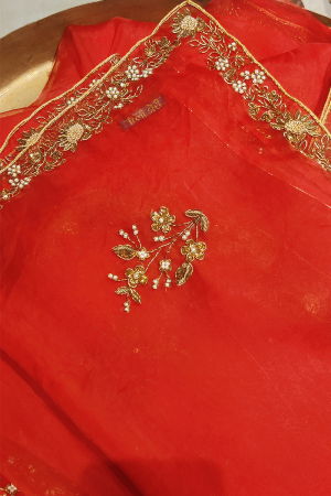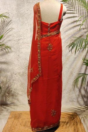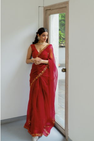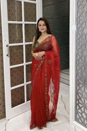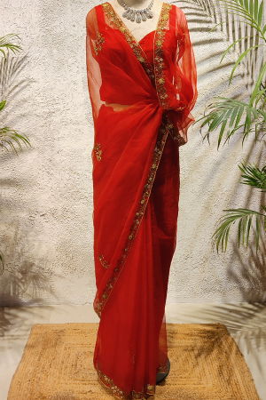 Product Description | It's a beautiful hand-embroidered silk organza saree in Red color which is so versatile & classy that you can wear it at any function or occasion. |