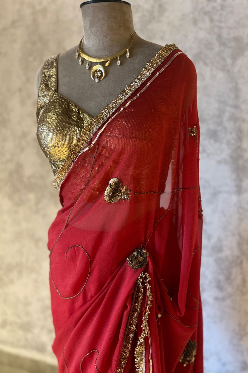 RED SIANA CHIFFON SAREE