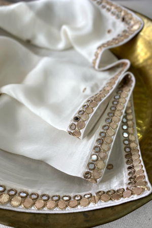 Immerse yourself in the luxurious feel of pure silk satin, delicately woven to create a fabric that drapes flawlessly and exudes a subtle sheen. The lightweight yet durable material ensures comfort as you glide through every occasion with effortless poise. Inspired by the flowing rivers and their serene beauty, the Rivera Silk satin Dupatta boasts a mesmerizing palette of colors, ranging from soft pastels to vibrant hues, each reflecting the myriad shades of nature. Adorned with intricate motifs and delicate embellishments, every saree tells a story of craftsmanship and tradition passed down through generations.