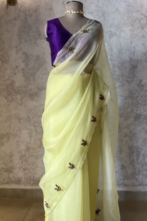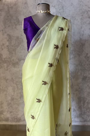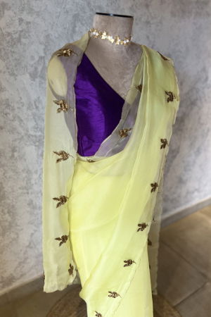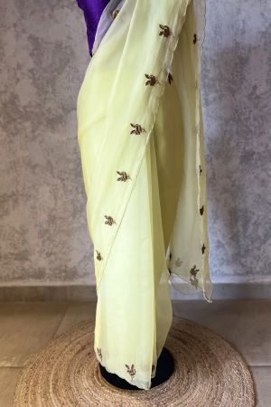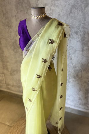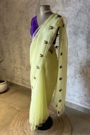 The Rosein Organza Saree is a stunning piece of attire that effortlessly blends elegance and charm. Crafted from lightweight and sheer organza fabric, this saree features a captivating shade of blue adorned with delicate rose patterns. Its soft texture and subtle sheen add a touch of sophistication, making it perfect for both formal occasions and festive celebrations. The intricate floral design enhances its graceful appeal, ensuring you stand out with timeless beauty and poise.