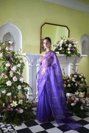 ROSEIN PURPLE SILK ORGANZA SAREE