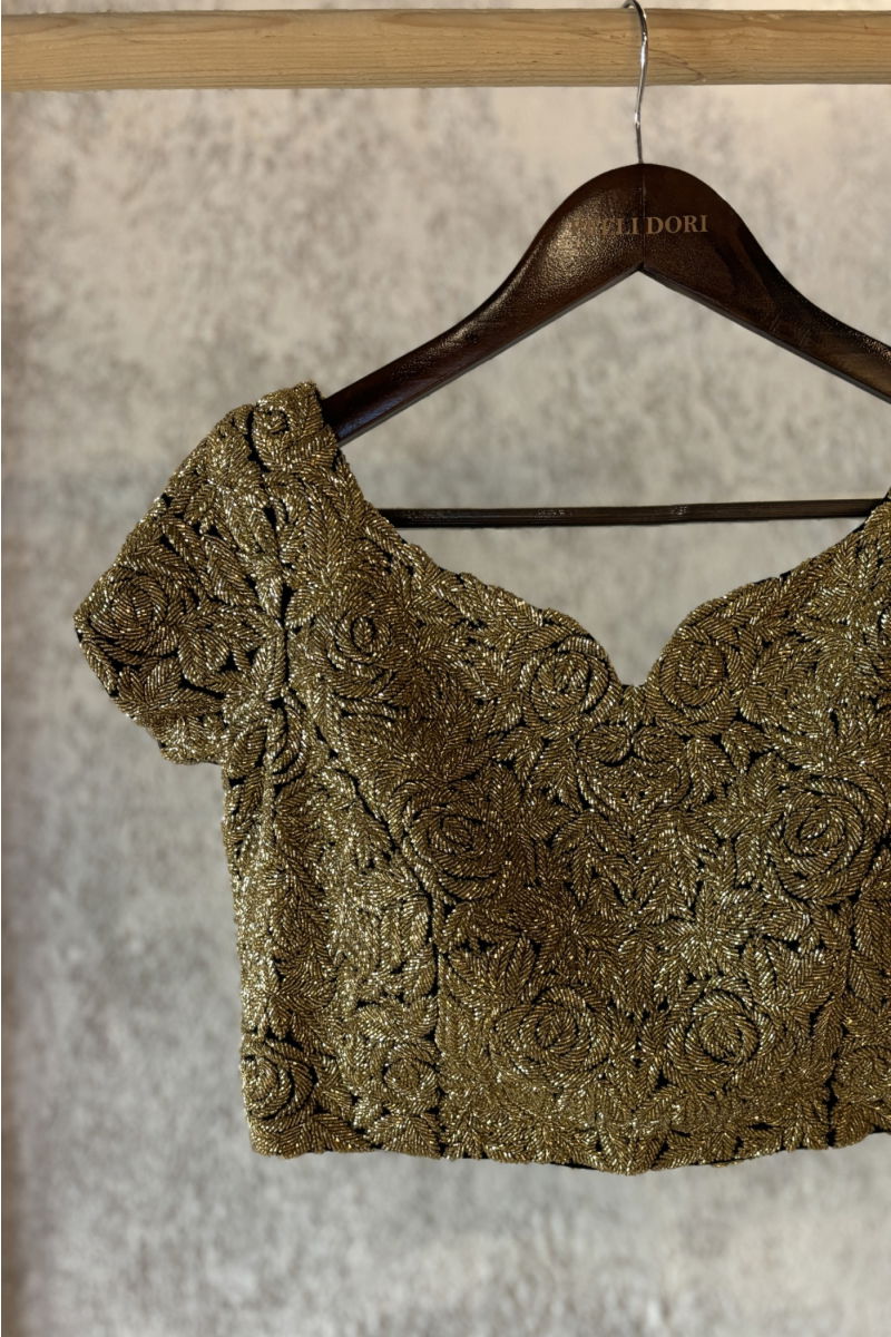 Rosy blouses are elegantly designed tops that feature delicate, shimmering sequences in a soft, rosy hue. These blouses combine a sophisticated shine with a feminine touch, perfect for adding a touch of glamour to any outfit. They offer a chic and versatile addition to your wardrobe, ideal for party occasions.