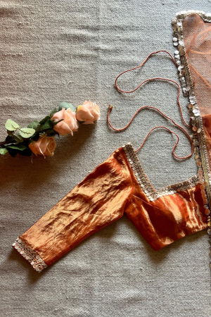 Product Description | Elevate your wardrobe with the Seesh Rust Silk Tissue Blouse, a perfect blend of elegance and comfort. Crafted from luxurious silk tissue fabric, this lightweight blouse drapes beautifully, offering a soft and airy feel. The rich rust hue adds a touch of warmth and sophistication, making it an ideal choice for any occasion, from formal gatherings to casual outings. Designed for effortless style, this blouse pairs beautifully with trousers, skirts, or traditional attire, ensuring a timeless and refined look. |