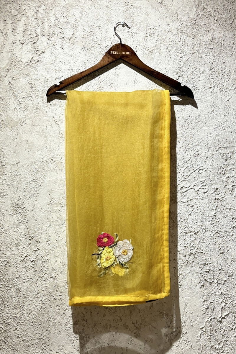 Elevate your ensemble with the Genda Dupatta, a masterful blend of elegance and craftsmanship in a mellow yellow hue that radiates warmth and sophistication. Woven from premium silk organza, this dupatta offers a luxurious drape and a subtle sheen that enhances its visual appeal. Each piece is meticulously hand-embroidered, showcasing intricate detailing that adds depth and artistry to the fabric. Dyed using organic methods, the color remains vibrant and true, reflecting a commitment to sustainable practices. Perfect for a range of occasions, from festive celebrations and weddings to intimate gatherings like mehandi and sangeet, this dupatta seamlessly transitions from day to night. Its lightweight yet substantial feel makes it ideal for lounging, cocktail events, or as a statement piece in your trousseau. Designed for the modern woman who values both tradition and refinement, the Genda Dupatta is a timeless addition to any wardrobe, available now at Peeli Dori Online Store.