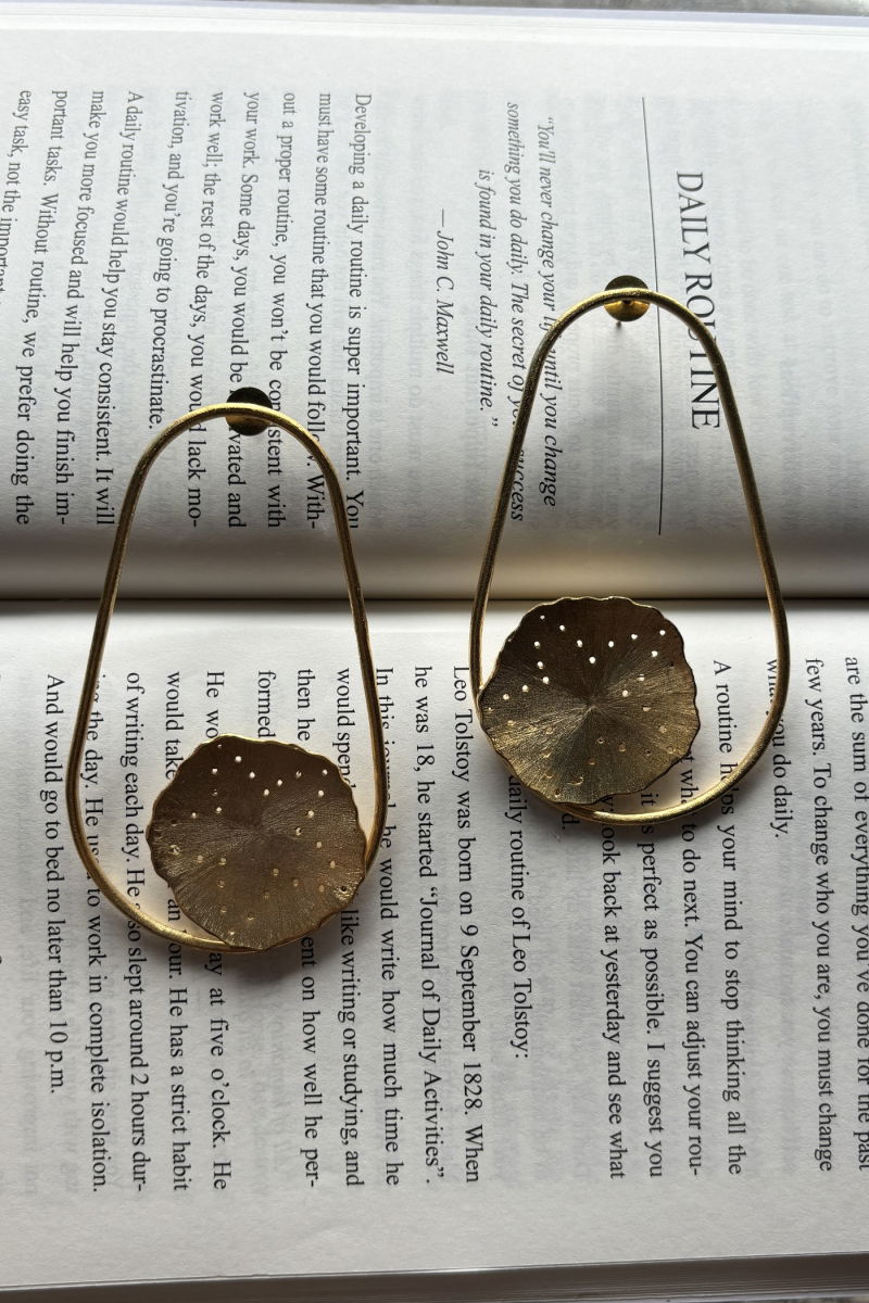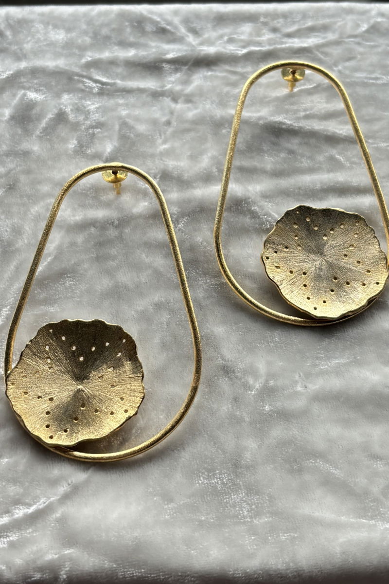 The SOLID MOGRA OVALS are a striking pair of gold-toned brass earrings, meticulously crafted with a 18-karat gold plating for a luxurious finish that complements a variety of styles. Each earring measures 9cm in length and 3cm in width, offering a bold yet elegant silhouette that makes a refined statement. Designed with versatility in mind, these earrings are ideal for a range of occasions including casual outings, brunches, Haldi and Mehandi ceremonies, cocktail events, trousseau ensembles, parties, and engagement functions. The solid construction ensures durability and long-lasting wear, while the gold color enhances both traditional and contemporary looks. Perfect for those seeking timeless elegance with a modern touch, the SOLID MOGRA OVALS blend craftsmanship and design to elevate any ensemble. Available through Peeli Dori Online Store, this piece belongs to the Aarjavee collection and is part of the Diwali Edit, making it a thoughtful choice for festive and celebratory moments.