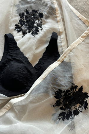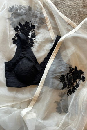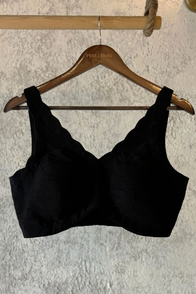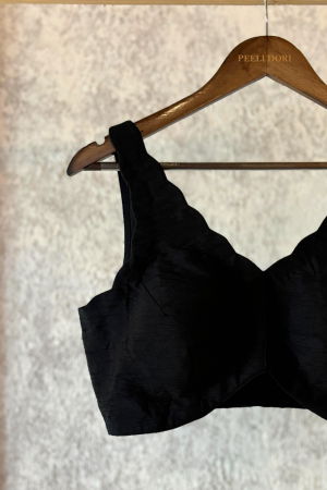 Product Description | The raw silk Black blouse is perfect to pair with ethnic saree style and look effortlessly stylish with this versatile and glamour look with this blouse. |