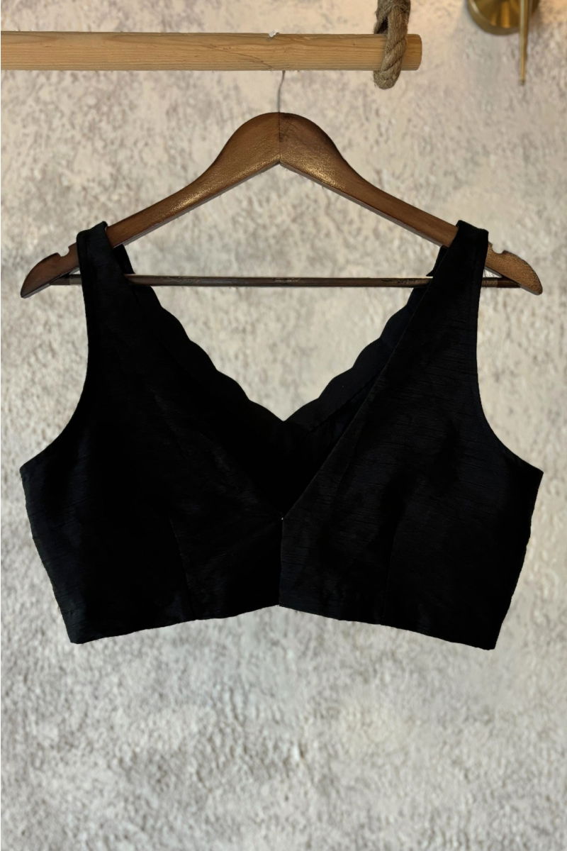 Look effortlessly stylish with this Black Scallop Blouse and elevate your ethnic wear game and this ensemble is perfect for any occasion.