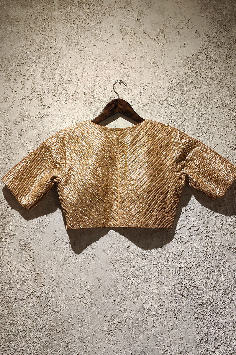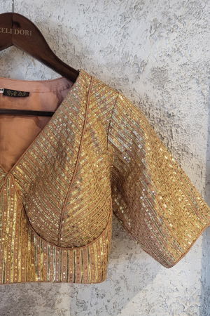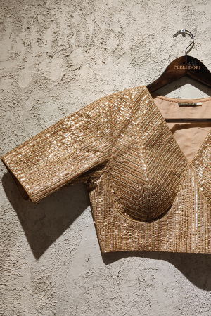 Elevate your wardrobe with this exquisitely designed sequin and gota blouse, a flawless amalgamation of style and comfort. Crafted to perfection, this blouse features a mesmerizing interplay of shimmering sequins and intricate gota work, enhancing its overall appeal with a regal touch. The delicate embellishments lend a luxurious charm, making it an ideal choice for festive occasions, weddings, and grand celebrations. Designed to offer both elegance and ease, this blouse ensures you look effortlessly glamorous while feeling comfortable throughout the day. Pair it with your favorite saree or lehenga to make a statement that exudes grace and sophistication.